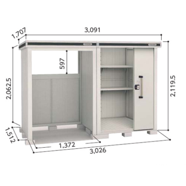 受注生産品 ヨドコウ LMD+LKD/エルモコンビ LMD-3629H+LKD2229H 物置 一般型 背高Hタイプ