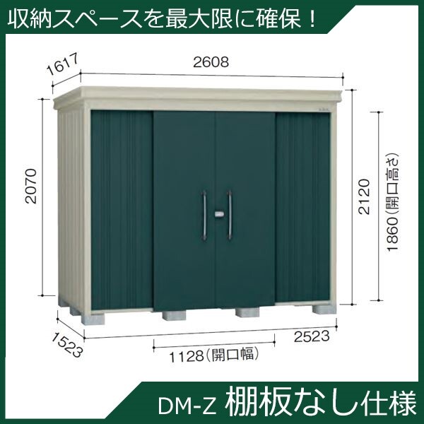 ダイケン ガーデンハウス 棚無し仕様 DM-Z 2515E-MG 一般型 『中型・大型物置 屋外 DIY向け』 マカダムグリーン