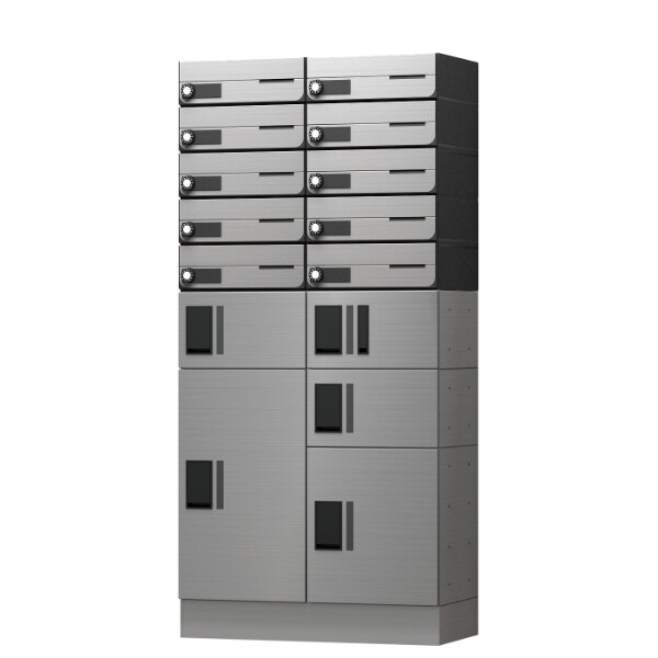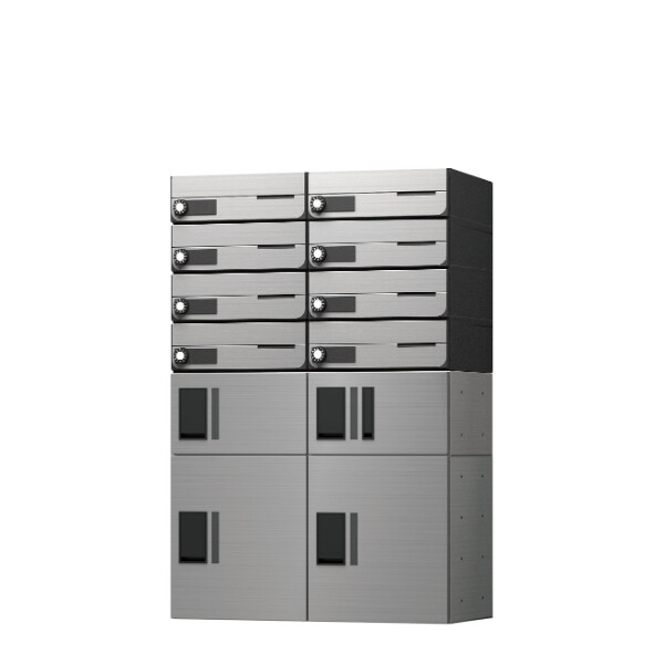 エスディエス 集合住宅向け宅配ボックス 組み合わせ例4 8戸向けポスト有り『賃貸 マンション アパート 後付け 宅配ボックス ポスト一体型 防滴 大容量 暗証番号』 チャコールグレー