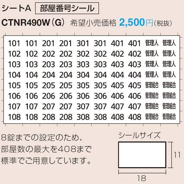 パナソニック 集合住宅用宅配ボックス コンボ メゾン オプション 部屋番号シート シートA CTNR490W(G)