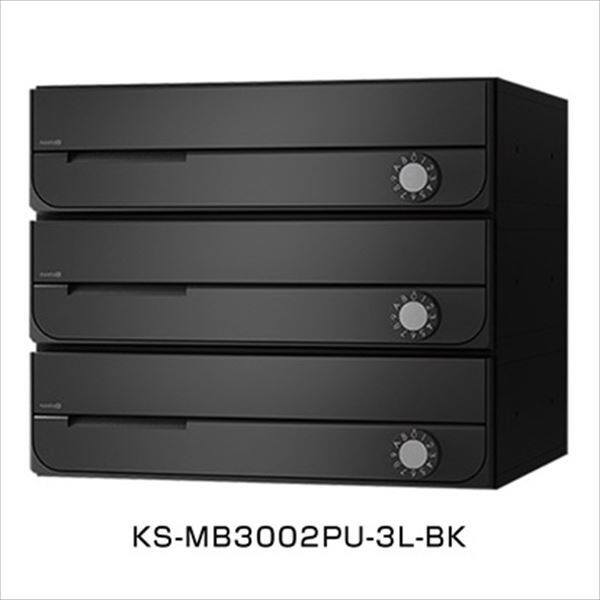 ナスタ2 集合住宅用ポスト 前入前出タイプ 可変ダイヤル錠 ※受注生産品 戸数3 KS-MB3002PU-3LK-BK 屋内用 ブラック