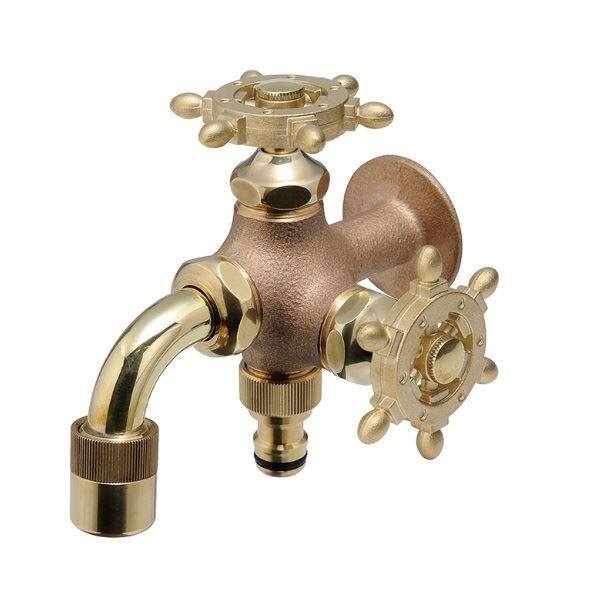 オンリーワン ガーデン水栓 二口万能胴長水栓 ラダーハンドル HV3-FBD-RE 鋳肌