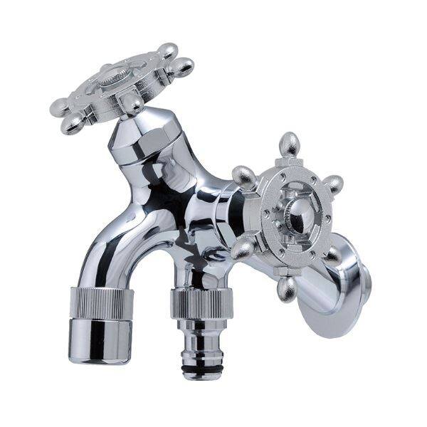 オンリーワン ガーデン水栓 T14型二口横水栓 ラダーハンドル HV3-T16F-RM メッキ