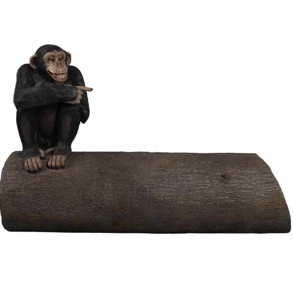 FRP 大木に腰掛けるチンパンジー / Monkey on tree trunk fr180038 『動物園オブジェ アニマルオブジェ 店舗・イベント向け』