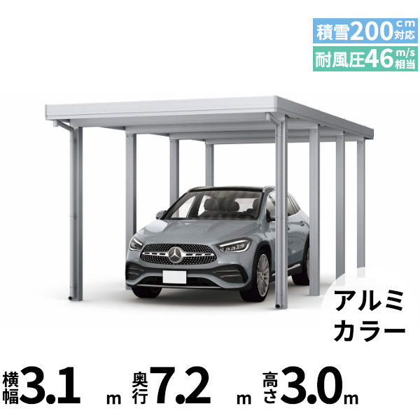 【商品のみ】カーポート 1.5台用 YKK YKKAP ジーポート Pro 6000タイプ 横材なし 明かり取りなし 奥行延長柱8本 J60・12-30 H30 アルミ色