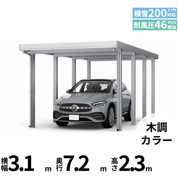 【商品のみ】カーポート 1台用 YKK YKKAP ジーポート Pro 6000タイプ 横材なし 明かり取りなし 単体柱8本 60-30 H30 木調色