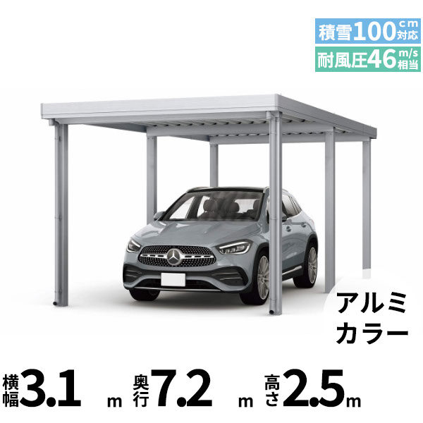 【商品のみ】カーポート 1.5台用 YKK YKKAP ジーポート Pro 3000タイプ 横材なし 明かり取りなし 奥行延長柱6本 J60・12-30 H25(凍上柱) アルミ色