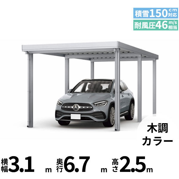 【商品のみ】カーポート 1台用 YKK YKKAP ジーポート Pro 3000タイプ 横材なし 明かり取りなし 単体柱6本 60-30 H25(凍上柱) 木調色