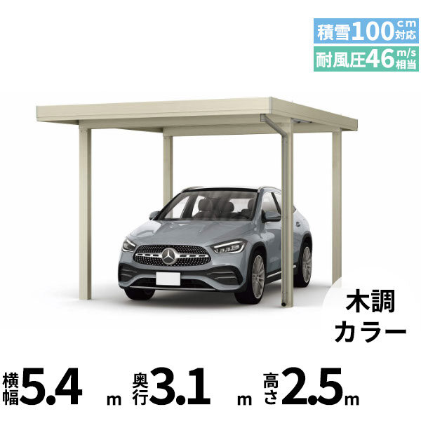 【商品のみ】カーポート 1台用 YKK YKKAP ジーポート Pro 3000タイプ 横材なし 明かり取りなし 単体柱4本 55-30 H25 木調色