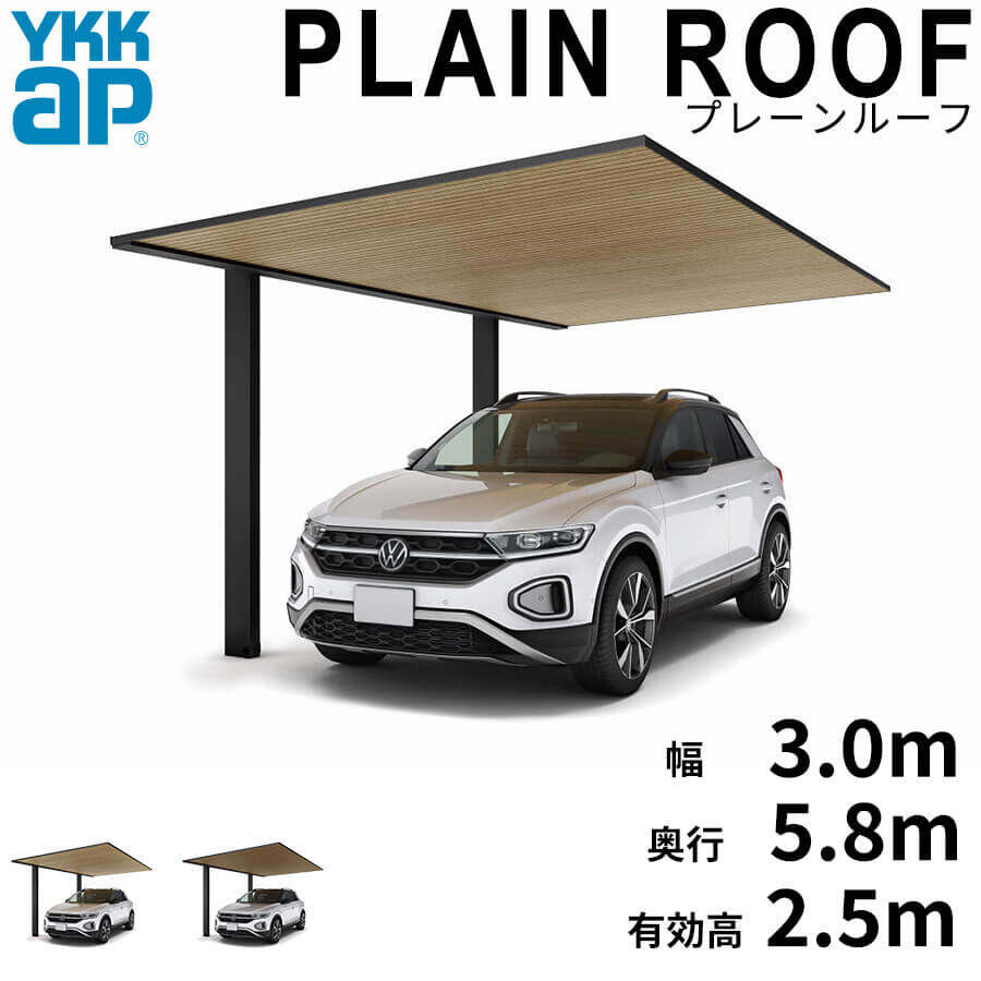 【商品のみ】カーポート 1台用 YKK YKKAP PLAIN ROOF プレーンルーフ 600タイプ 単体セット 58-30M H25 複合色(ラミネート) 木調色