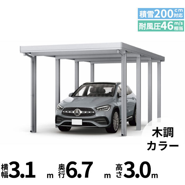 【商品のみ】カーポート 1台用 YKK YKKAP ジーポート Pro 6000タイプ 横材なし 明かり取りなし 単体柱8本 55-30 H30 木調色