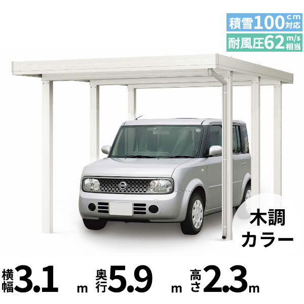 【商品のみ】カーポート 1台用 YKK YKKAP ジーポート Pro GR3000タイプ 横材なし 明かり取りなし 単体柱6本 60-30 H30 木調色