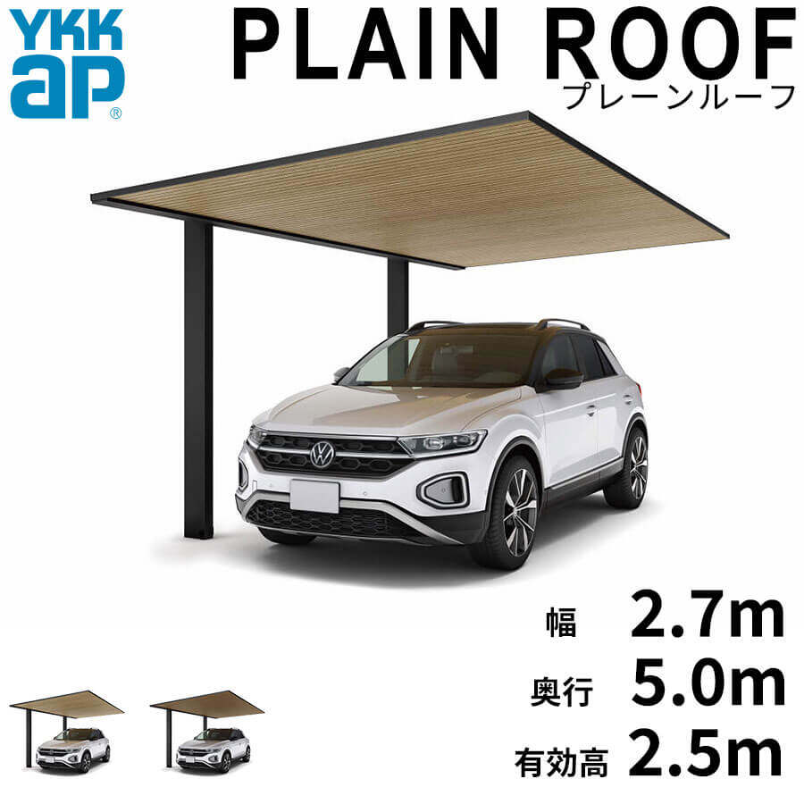 【商品のみ】カーポート 1台用 YKK YKKAP PLAIN ROOF プレーンルーフ 600タイプ 単体セット 50-27L H28 複合色(ラミネート) 木調色