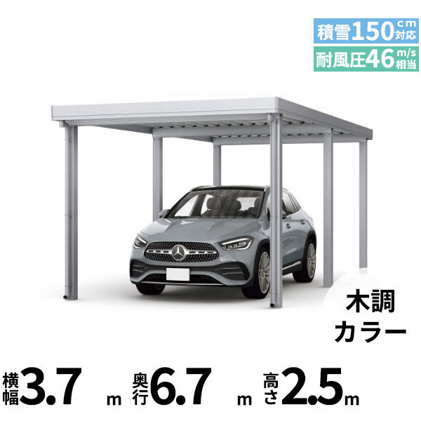 【商品のみ】カーポート 1台用 YKK YKKAP ジーポート Pro 4500タイプ 横材なし 明かり取りなし 単体柱6本 60-36 H25 木調色