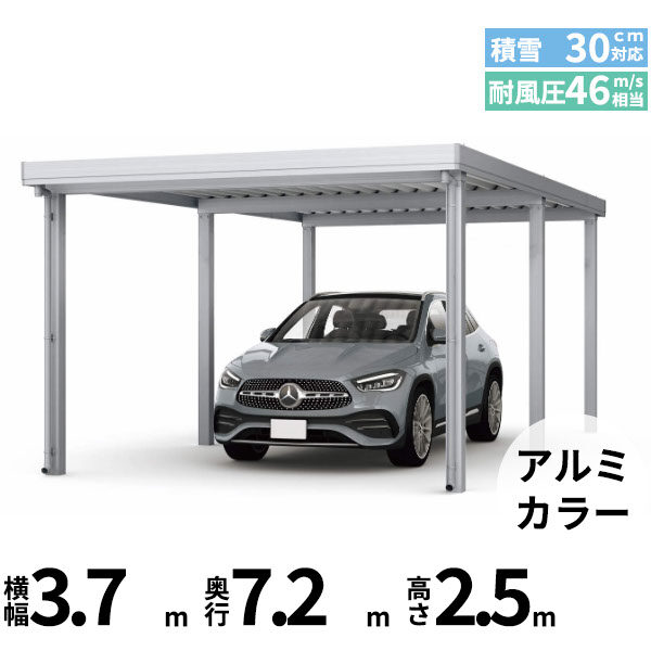 【商品のみ】カーポート 1.5台用 YKK YKKAP ジーポート Pro 900タイプ 横材なし 明かり取りなし 奥行延長柱6本 J60・12-36 H25 アルミ色