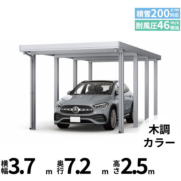 【商品のみ】カーポート 1.5台用 YKK YKKAP ジーポート Pro 6000タイプ 横材なし 明かり取りなし 奥行延長柱8本 J60・12-36 H25 木調色