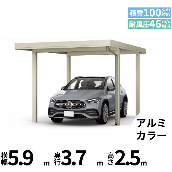 【商品のみ】カーポート 1台用 YKK YKKAP ジーポート Pro 3000タイプ 横材なし 明かり取りなし 単体柱4本 60-36 H25 アルミ色