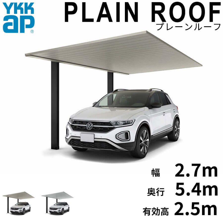 【商品のみ】カーポート 1台用 YKK YKKAP PLAIN ROOF プレーンルーフ 600タイプ 単体セット 54-27L H28 アルミ色 アルマイト仕上げ