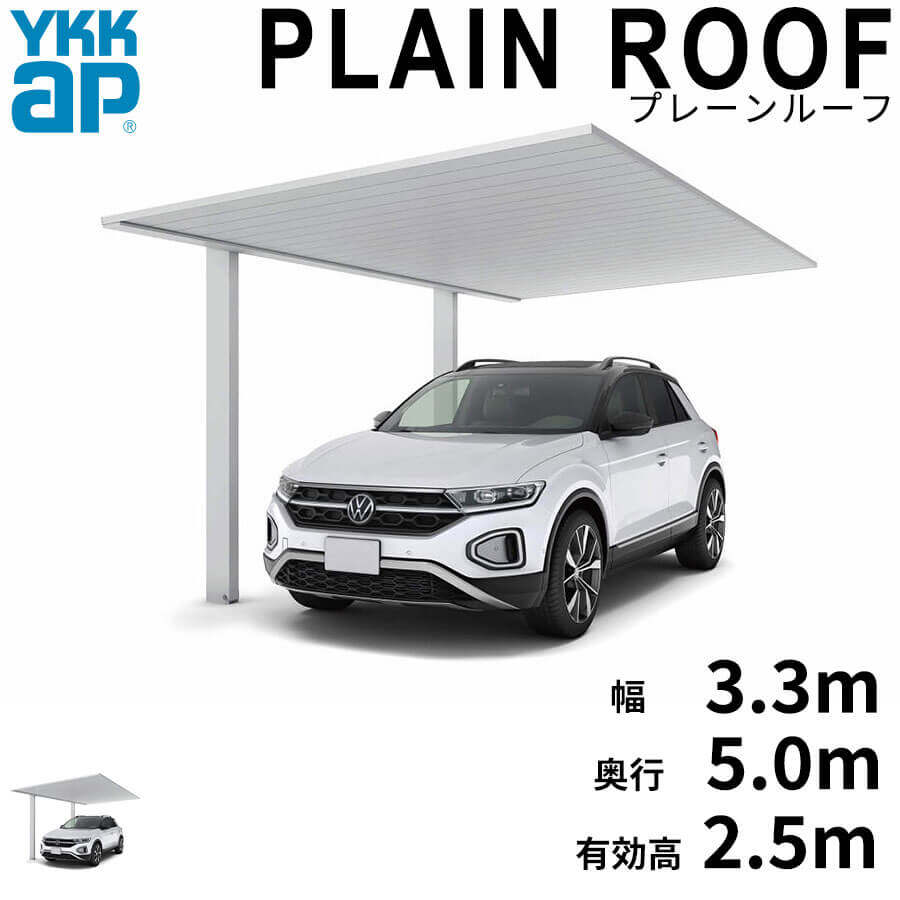 【商品のみ】カーポート 1台用 YKK YKKAP PLAIN ROOF プレーンルーフ 600タイプ 単体セット 50-33M H25 アルミ色(ツートーン) ブラスト仕上げ