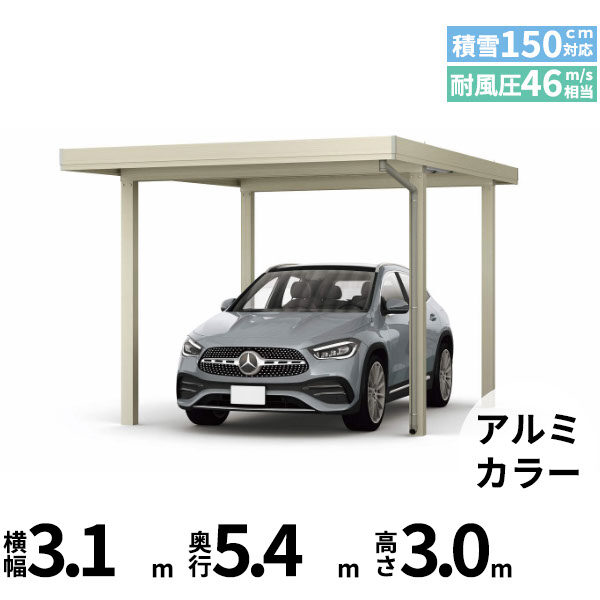 【商品のみ】カーポート 1台用 YKK YKKAP ジーポート Pro 4500タイプ 横材なし 明かり取りなし 単体柱4本 55-30 H30 アルミ色