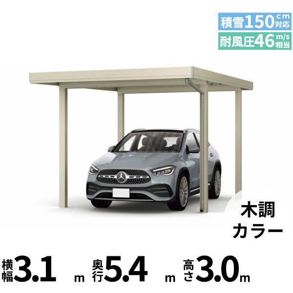 【商品のみ】カーポート 1台用 YKK YKKAP ジーポート Pro 3000タイプ 横材なし 明かり取りなし 単体柱6本 55-30 H25 木調色