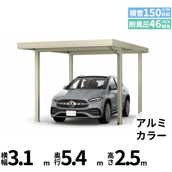 【商品のみ】カーポート 1台用 YKK YKKAP ジーポート Pro 3000タイプ 横材なし 明かり取りなし 単体柱4本 60-30 H30 アルミ色