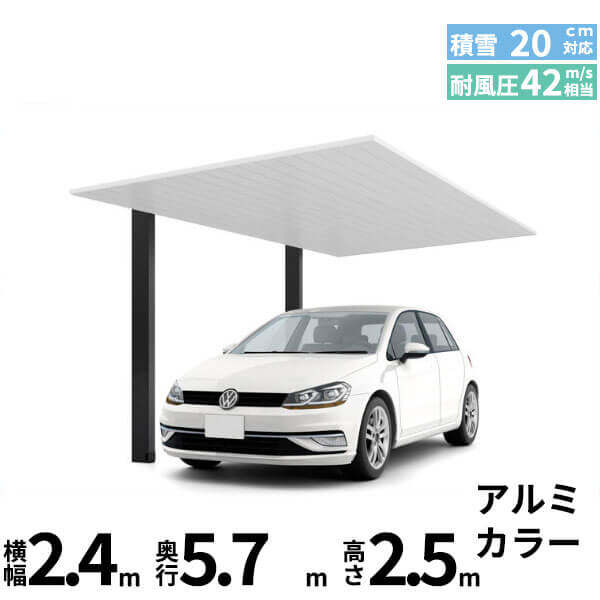 【商品のみ】カーポートSC 1台用 基本棟 標準柱(H22) 24-57型 LIXIL リクシル アルミ形材色