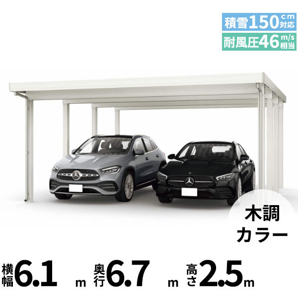 【商品のみ】カーポート 2台用 YKK YKKAP PLAIN ROOF プレーンルーフ 600タイプ 単体セット 58-54L H28 複合色(ラミネート) 木調色