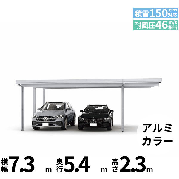 【商品のみ】カーポート 2台用 YKK YKKAP ジーポート Pro 4500タイプ 横材なし 明かり取りなし 間口延長柱6本(梁3列) E60-48・18 H25 アルミ色