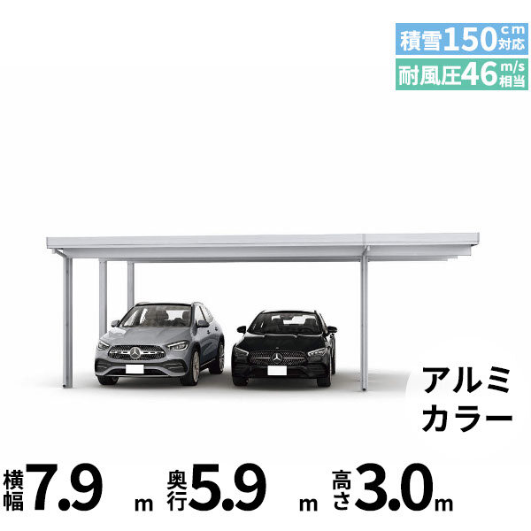 【商品のみ】カーポート 2台用 YKK YKKAP ジーポート Pro 4500タイプ 横材なし 明かり取りなし 単体柱6本 60-60 H30 アルミ色