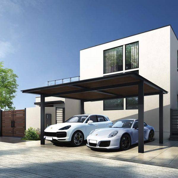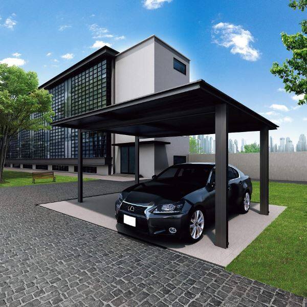 【商品のみ】カーポート 2台用 YKKAP YKK エフルージュFIRST 1500タイプ 複合カラー M合掌セット M51・24-24M ハイルーフ柱 屋根/熱線遮断ポリカーボネート板 奥行:5052mm×幅:4860mm 有効高:2500mm 柱6本