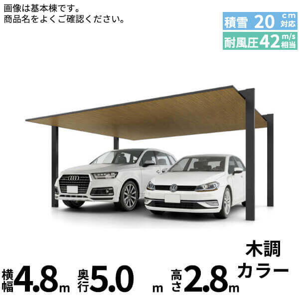 【商品のみ】カーポートSC 2台用 基本棟 H28柱 48-50型 LIXIL リクシル 木調色