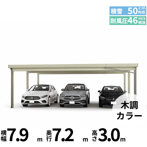 【商品のみ】カーポート 3台用 YKK YKKAP ジーポート Pro 900タイプ 横材なし 明かり取りなし 間口(2)連結柱6本 M60-48・30 H30 木調色