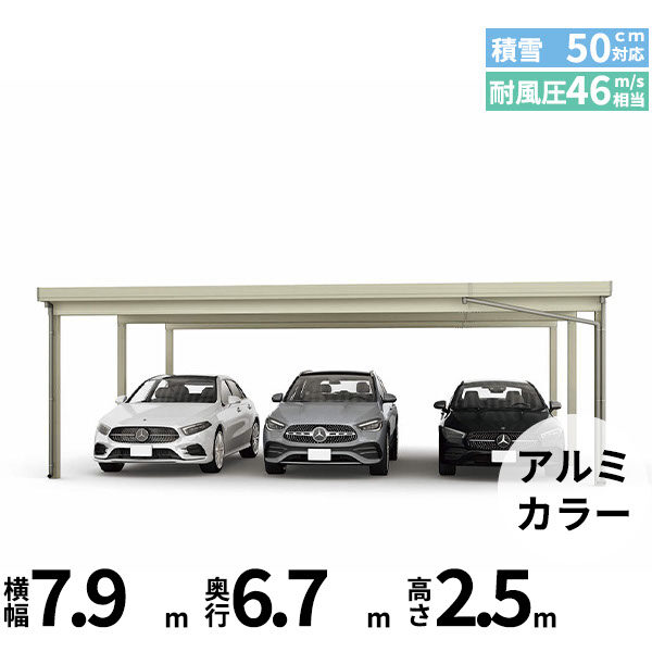 【商品のみ】カーポート 3台用 YKK YKKAP ジーポート Pro 1500タイプ 横材なし 明かり取りなし 単体柱4本 55-80 H25 アルミ色
