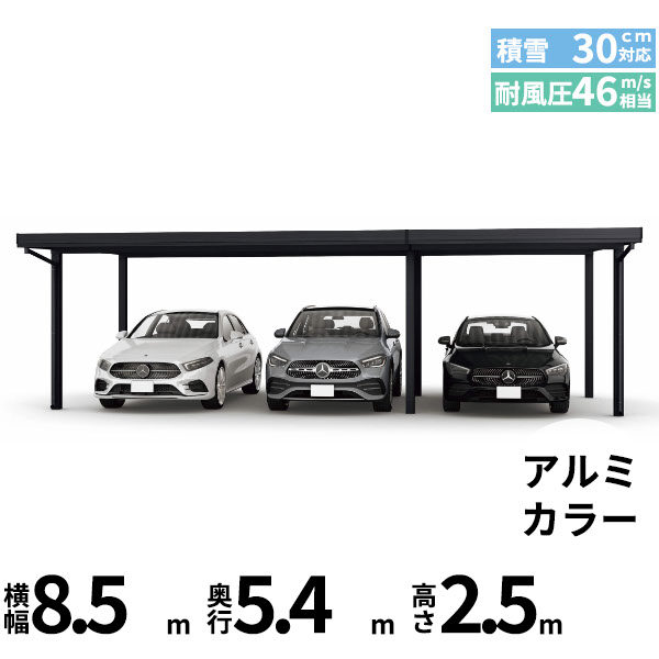 【商品のみ】カーポート 3台用 YKK YKKAP ジーポート Pro 900タイプ 横材なし 明かり取りなし 間口(2)連結柱6本 M60-48・30 H30 アルミ色