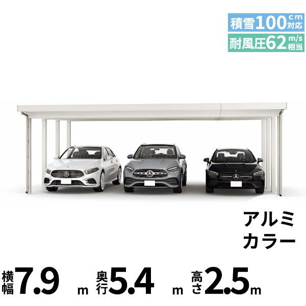 【商品のみ】カーポート 3台用 YKK YKKAP ジーポート Pro GR3000タイプ 横材なし 明かり取りなし 単体柱6本 55-80 H25 アルミ色