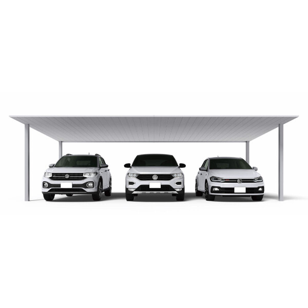積雪地向けでありながら、光を通す3台用のフラットカーポートです