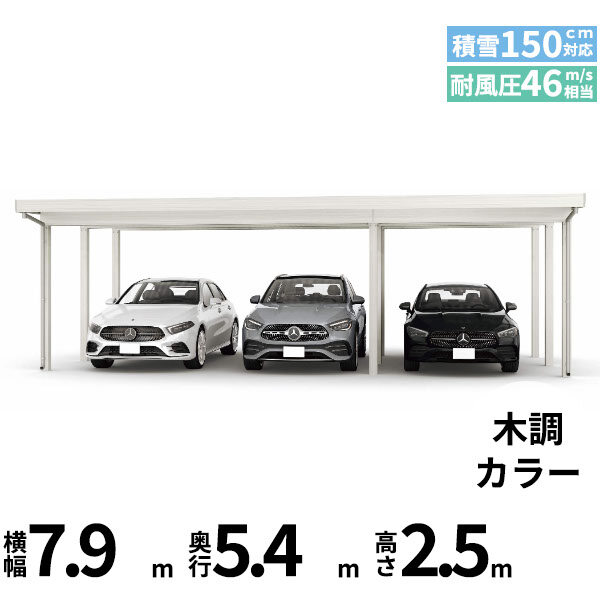 【商品のみ】カーポート 3台用 YKK YKKAP ジーポート Pro 3000タイプ 横材なし 明かり取りなし 間口(2)連結柱9本 M60-55・30 H25 木調色