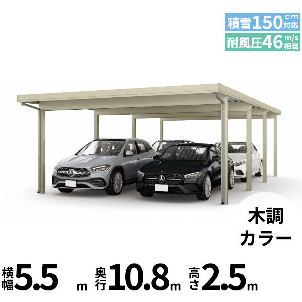 【商品のみ】カーポート 4台用 YKK YKKAP ジーポート Pro 4500タイプ 横材なし 明かり取りなし 間口(2)連結柱9本(梁3列) M55-55・55 H25 木調色