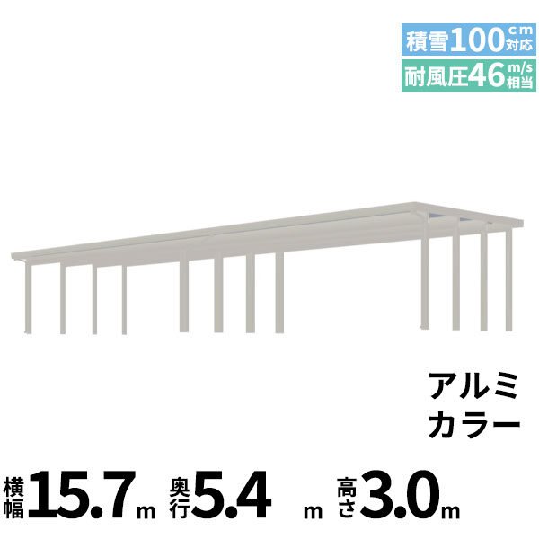【商品のみ】カーポート 6台用 YKK YKKAP ジーポート Pro 3000タイプ 横材なし 明かり取りなし 間口(2)連結柱12本 M55-80・80 H30 アルミ色