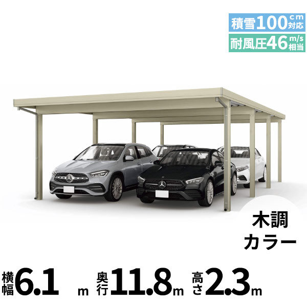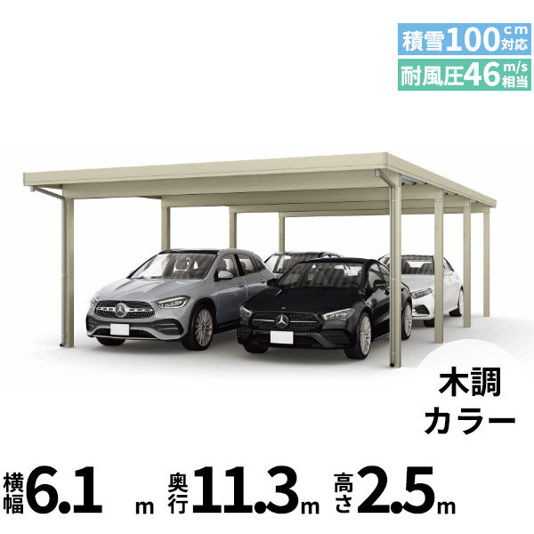 【商品のみ】カーポート 6台用 YKK YKKAP ジーポート Pro 3000タイプ 横材なし 明かり取りなし 間口(2)連結柱12本 M55-80・80 H30 木調色