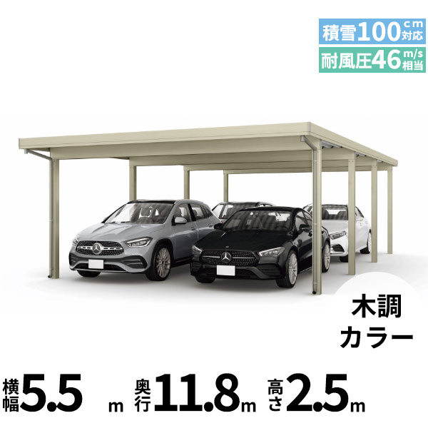 【商品のみ】カーポート 4台用 YKK YKKAP ジーポート Pro 3000タイプ 横材なし 明かり取りなし 奥行(2)連結柱12本 J55・55-48 H24 木調色