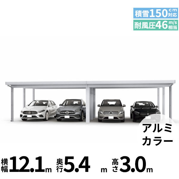 【商品のみ】カーポート 4台用 YKK YKKAP ジーポート Pro 3000タイプ 横材なし 明かり取りなし 奥行(2)連結柱12本 J55・60-55 H30 アルミ色