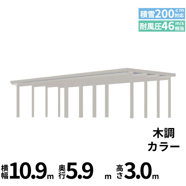 【商品のみ】カーポート 4台用 YKK YKKAP ジーポート Pro 6000タイプ 横材なし 明かり取りなし 間口(2)連結柱9本 M55-60・60 H30 木調色
