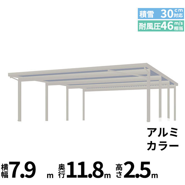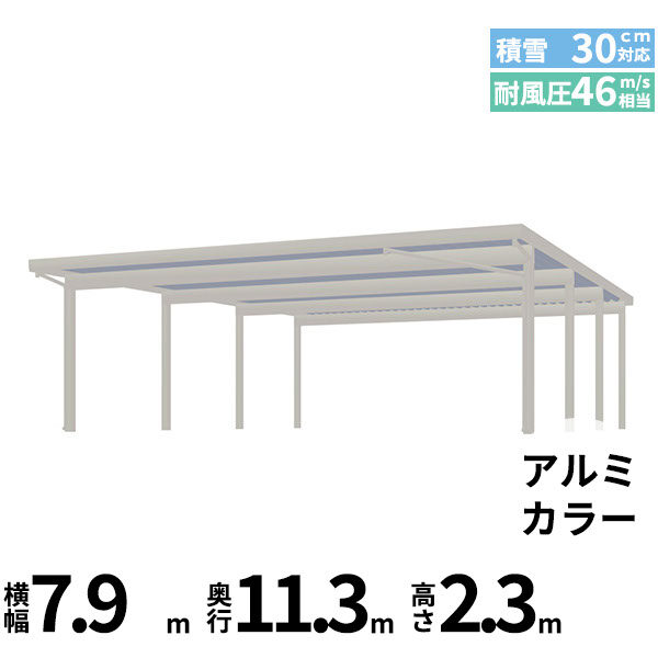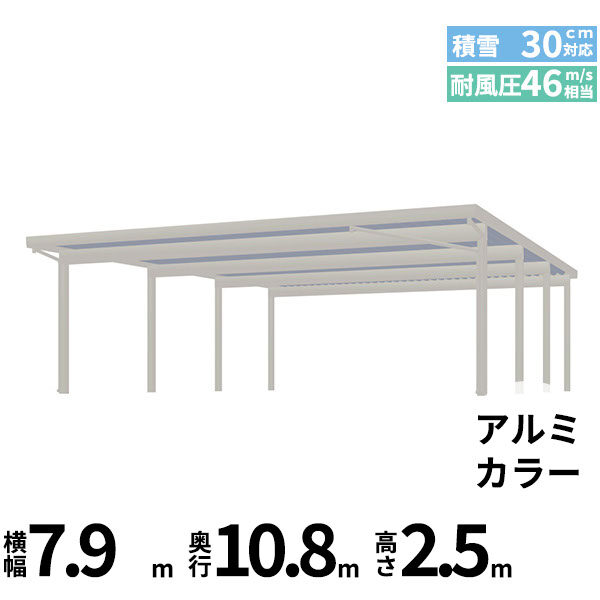 【商品のみ】カーポート 6台用 YKK YKKAP ジーポート Pro 900タイプ 横材なし 明かり取りなし 奥行(2)連結柱8本 J55・60-80 H30 アルミ色
