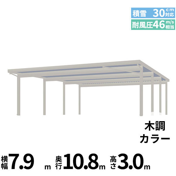 【商品のみ】カーポート 6台用 YKK YKKAP ジーポート Pro 900タイプ 横材なし 明かり取りなし 間口(2)連結柱6本 M60-80・80 H30 木調色
