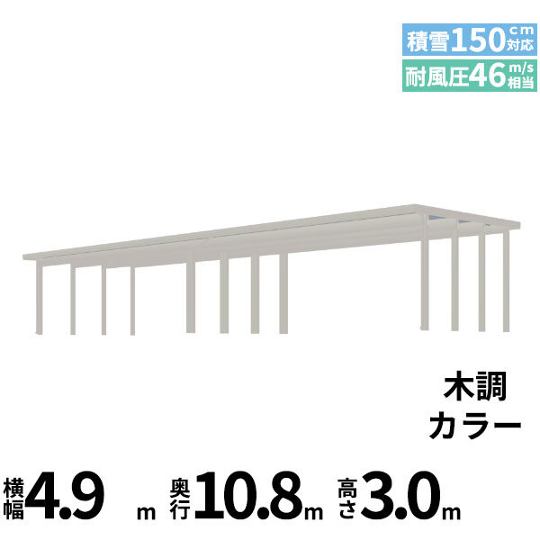 【商品のみ】カーポート 4台用 YKK YKKAP ジーポート Pro 6000タイプ 横材なし 明かり取りなし 間口(2)連結柱9本 M55-55・55 H30 木調色
