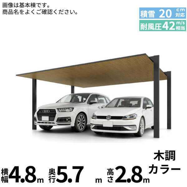 【商品のみ】カーポートSC 2台用 基本棟 H28柱 48-57型 LIXIL リクシル 木調色