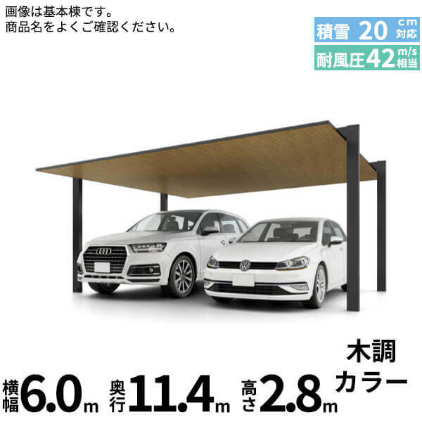 【商品のみ】カーポートSC 2台用 縦2連棟 H28柱 60-57型 LIXIL リクシル 木調色