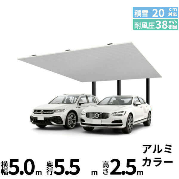 【商品のみ】カーポートSC 後方支持 2台用 基本棟 標準柱(H25) 50-55型 LIXIL リクシル アルミ形材色